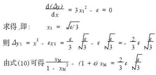 式(12)表示在滿足Δy1=-ΔyM的條件下,ε與xM的關系。