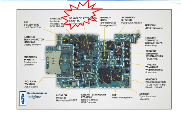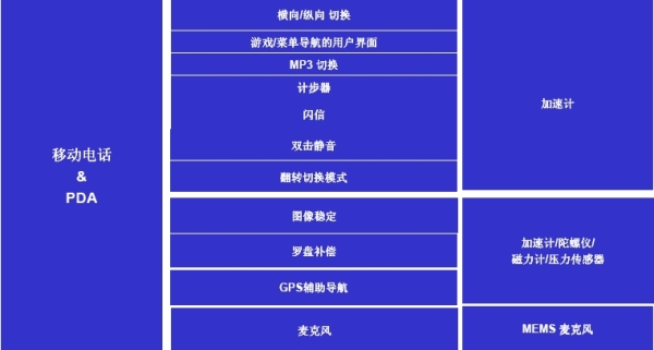 圖1:MEMS傳感器在移動(dòng)電話和PDA中的應(yīng)用