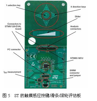 ST公司設(shè)計(jì)了完整的基于RC充電檢測(cè)的電容式感應(yīng)觸摸方案的完整設(shè)計(jì),包括PCB和完整的源程序,以及基于STM8S的標(biāo)準(zhǔn)觸摸感應(yīng)庫(TouchSenseLibrary:TSL)和應(yīng)用API接口,采用易于移植的C設(shè)計(jì),用戶可以方便地應(yīng)用于其他任何MCU系統(tǒng)中。因?yàn)镽C充電理論涉及的專利已經(jīng)對(duì)公眾開放,所以完全沒有專利的限制。