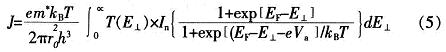 式中:e為電子電荷的大小,m*為GoAs電子的有效質量,kB為玻爾茲曼常數,T為絕對溫度,EF為費米能級,E1為入射電子垂直(縱向)能量。