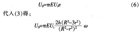 式中:μ為硅材料的泊松比,μ=O.35;R,r,h分別為硅膜片的有效半徑,計算半徑,厚度;E為硅材料的模量,E=8.7Gpa;P為作用于平膜片上的壓力;ω為平膜片的撓度;