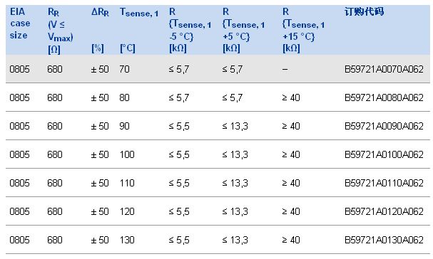 除了配置簡單可靠,該電路還有另一顯著優勢:由于超級系列PTC傳感器在75 ~ 145℃范圍均有極限溫度差別是10 K的型號,因此可針對性地使用不同參考溫度監測各熱點。表1所述為超級系列產品主要數據。