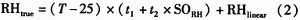 由于溫度對濕度的影響十分明顯,而實(shí)際溫度和測試參考溫度25℃有所不同。補(bǔ)償公式如式(2)所示。