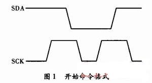 (1)傳輸開始。在SCK為高時(shí)使SDA由高電平變?yōu)榈碗娖剑⒃谙乱粋€(gè)SCK為高時(shí)將SDA升高,如圖1所示。