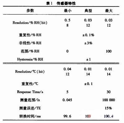 該傳感器集環(huán)境溫、濕度和光照度傳感器于一體,使測量系統(tǒng)的成本和體積大為降低,減少了系統(tǒng)設(shè)計(jì)的復(fù)雜性。