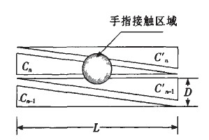 Ca(n)、Cb(n)、為第一組感應(yīng)電極,Cb(n)、Cb(n)''''為第二組感應(yīng)電極,Ca(n)''''、Cb(n)''''為第三組感應(yīng)電極,分別感應(yīng)X1、X2、X3范圍內(nèi)坐標(biāo)點(diǎn)的位置。具體坐標(biāo)計(jì)算方法與上述類似。設(shè)計(jì)中需要注意X1、X2、X3每組電極的寬度應(yīng)與手指接觸面積的寬度相當(dāng),如寬度不足則需要增加菱形電極,否則手指接觸在相同區(qū)域內(nèi)無(wú)法識(shí)別兩個(gè)感應(yīng)點(diǎn)。