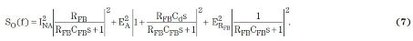 最后,我們需要最大化信噪比(SNR)。在進行仿真以前進行簡單的理論噪聲分析會有所幫助。圖4顯示了電荷放大器的主噪聲源。輸出噪聲譜密度可以表示為: