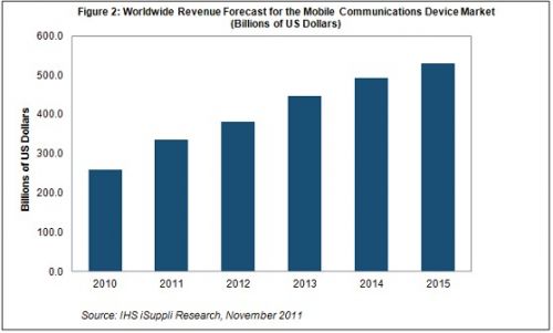 據(jù)IHS iSuppli公司的無線通信市場研究報(bào)告,智能手機(jī)和平板電腦在消費(fèi)者中日益普及,今年將推動移動通信產(chǎn)品與無線基礎(chǔ)設(shè)施設(shè)備營業(yè)收入大增29%。