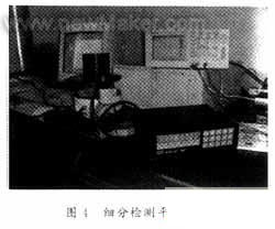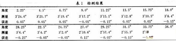 如圖4所示,我們搭建了細(xì)分檢測(cè)硬件平臺(tái),由標(biāo)定系統(tǒng)一維平轉(zhuǎn)臺(tái)和同軸的圓光柵編碼器構(gòu)成。數(shù)顯裝置顯示了標(biāo)定轉(zhuǎn)臺(tái)實(shí)際轉(zhuǎn)過(guò)的角度,同時(shí),主機(jī)通過(guò)接口電路對(duì)細(xì)分方波進(jìn)行計(jì)數(shù)并顯示,經(jīng)過(guò)多次測(cè)量,兩顯示值之間的差e≤1,即,小于等于一個(gè)當(dāng)量,達(dá)到了設(shè)計(jì)目的。同時(shí),通過(guò)伺服驅(qū)動(dòng)的一維平轉(zhuǎn)臺(tái)系統(tǒng)及檢測(cè)機(jī)構(gòu)來(lái)定量地檢測(cè)分析細(xì)分誤差,初始位置:3′26.3″,末位置:2′50.7″,差值:3′26.3″-2′50.7″=35.6″,36.0″-35.6″=0.4″,結(jié)果如表1所示。