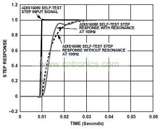圖2. 帶和不帶100 Hz諧振的傳感器的步進響應