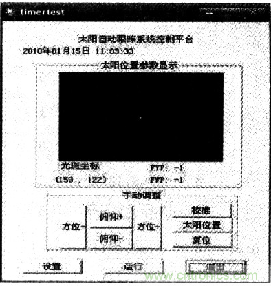 當厚云層擋住太陽時,或者由于其他原因太陽光斑無法出現在傳感器視角內,則VC++調用時鐘跟蹤算法,繼續跟蹤,直到云層過去后,再重新使用圖像傳感器跟蹤。