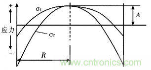 圖3:周邊固支圓平膜片表面應(yīng)力示意圖