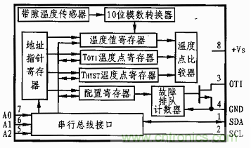 與I2C兼容的接口總線在AD7416上電后就一直有效,因此在芯片處于休眠狀態(tài)下仍可進行片內數據的讀出和寫入。