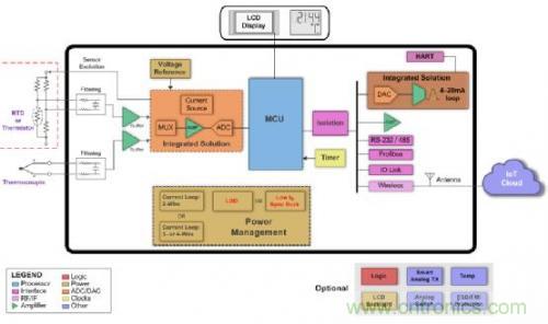 圖 1:針對(duì)過程控制應(yīng)用的溫度變送器方框圖
