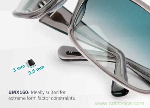 相比于智能手機,穿戴式設備面臨更加嚴苛的空間和功耗限制。BMX160節能9軸傳感器為這類使用環境提供了一種理想的解決方案。這款全新傳感器安裝于緊湊的2.5 x 3.0 x 0.95 mm3封裝中,而且是行業內最小型的9軸運動傳感器。