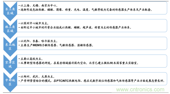 目前,我國傳感器的生產企業主要集中在長三角地區,并逐漸形成以北京、上海、南京、深圳、沈陽和西安等中心城市為主的區域空間布局。其中,主要傳感器企業有接近一半的比例分布在長三角地區,其他依次為珠三角、京津地區、中部地區及東北地區等。