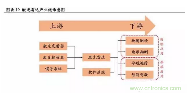 實際上,產業鏈的上游制造元件成本不高,不是構成成本的主要因素;且因為激光雷達是下游測繪、導航等應用的核心部件,目前產能稀缺導致供不應求,呈現賣方市場,對下游有很強的定價權,因此該產業鏈主要附加值在于激光雷達部分。