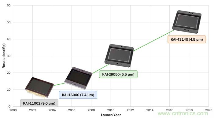 Interline Transfer CCD技術用于開發高分辨率、大格式圖像傳感器已超過15年,其分辨率隨市場需要逐漸提高。例如,2003年的KAI-11000圖像傳感器以35 mm光學格式提供1100萬像素的分辨率;但到2011年,這種相同的光學格式幾乎可支持三倍的分辨率。