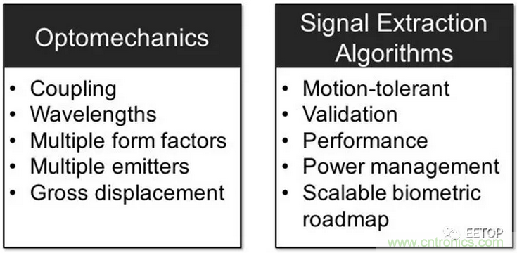 圖3:集成光學(xué)心率傳感器的主要挑戰(zhàn)