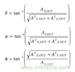 圖2:XYZ三軸與參考位置的夾角計算公式