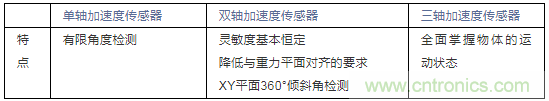 該使用哪種加速度傳感器,應根據具體的應用要求而定,比如檢測傾斜角范圍、檢測對象在XYZ三軸運動上是否有限定、檢測精度要求等等。