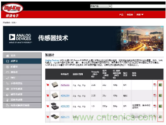 舉個例子, ADI三軸加速度傳感器ADXL355BEZ配套的評估板可以在Digi-Key的產品頁面中配用欄中找到匹配的評估板EVAL-ADXL355Z。也可以通過ADI加速度傳感器選擇與開發板選擇頁面中最后一欄中找到對應的開發板。