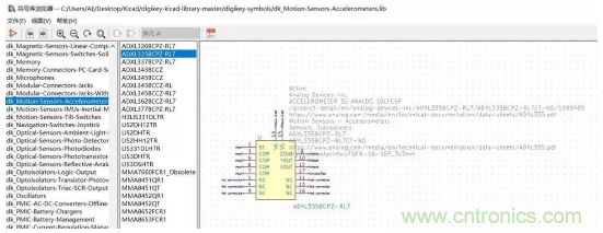 KiCad是一種開源免費的電子設計自動化 (EDA) 工具,能滿足基本的原理圖與PCB板設計功能,Digi-Key推出自己的Digi-Key KiCad 電子元器件庫,幫助加速設計進程。其中包括多個ADI加速度傳感器的原理圖庫與封裝庫。舉例:ADI的 ADXL335BCPZ-RL7。